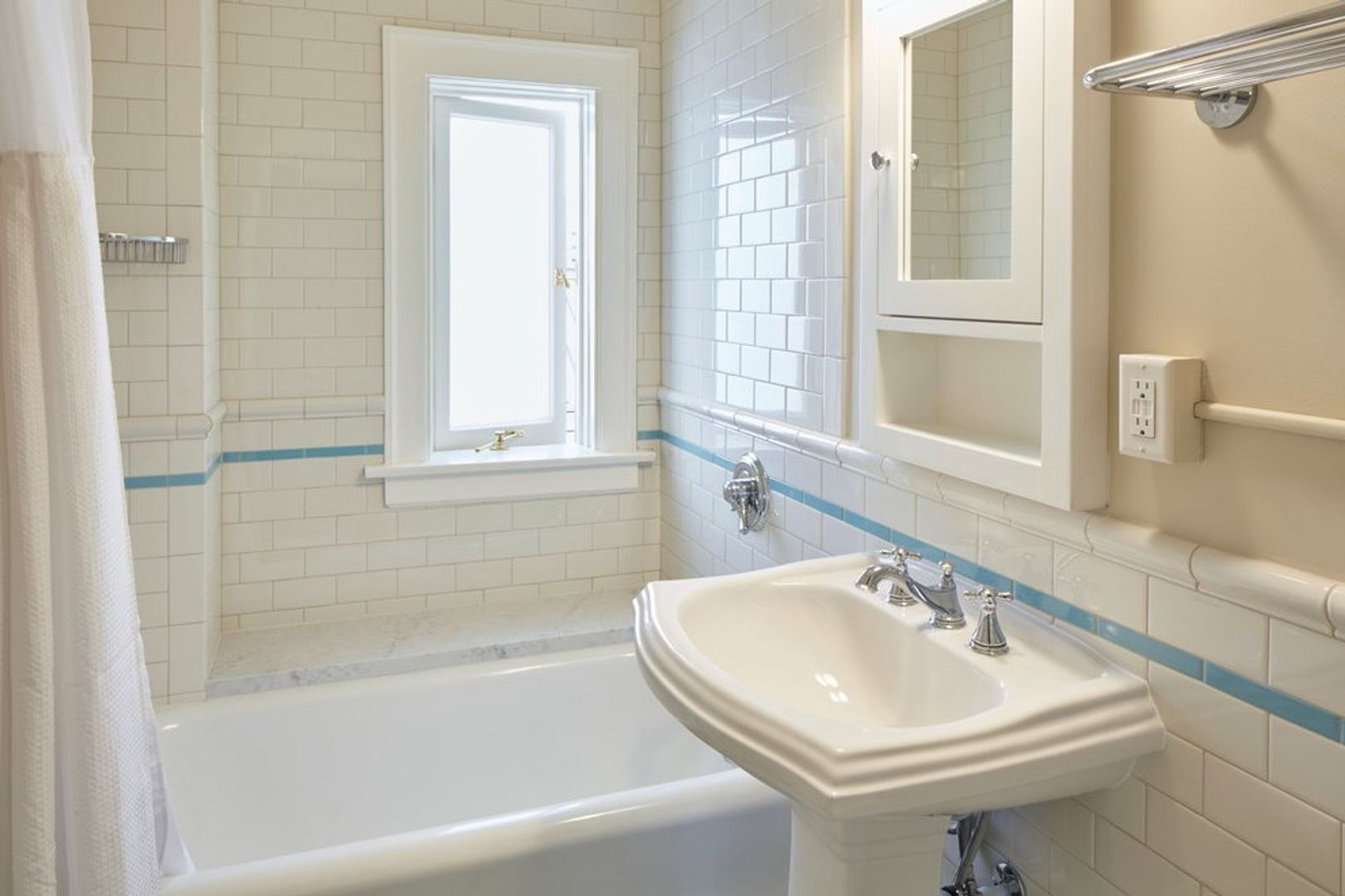 Each studio has been meticulously styled with new cabinetry, quartz counters, stainless steel appliances and warm lighting. The plank styled flooring is complimented by warm paint tones and unique window treatments. You'll notice the spacious living areas and the soaring 9 foot ceilings; well lit by the French door windows that open to the balconettes. Much has been updated; but the restyling only enhances the vintage features such as subway tile, deep tubs and pedestal sinks sitting upon coin flooring tile. This studio features a dressing room built in to provide a generous space for your wardrobe.