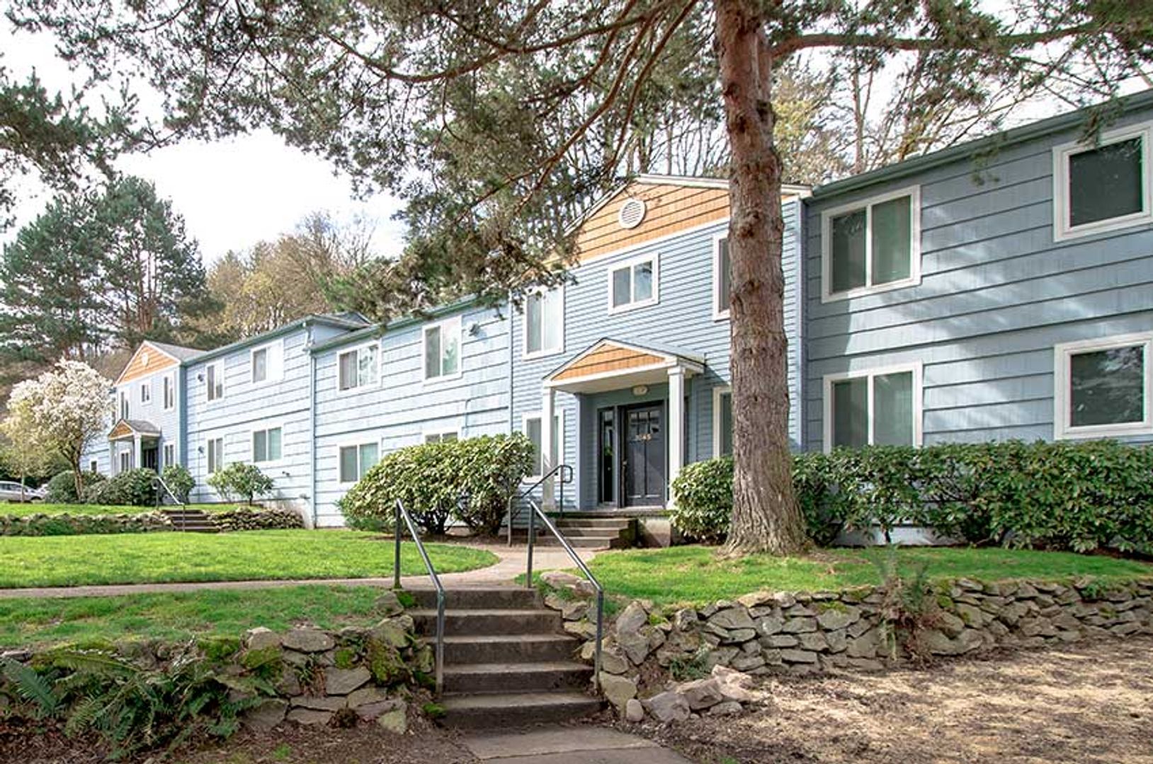 Parking is included but there is plentiful street parking in the neighborhood. Lovely garden courtyards abound throughout the property with persimmons, pines, magnolias and huge rhododendrons, perfect for taking in the flora and fauna.