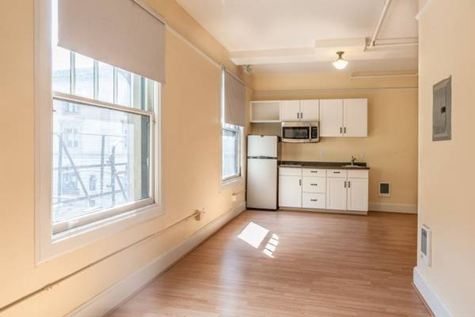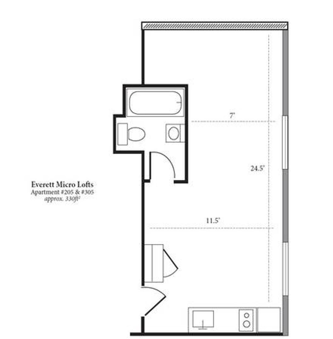 Everett Micro Lofts #305: Vintage Top Floor End Studio with Exposed Brick & Views